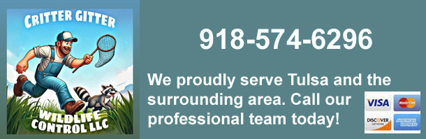 If you have any questions about a wildlife problem in Claermore, or wildlife removal in Rogers County, please give Critter Gitter Wildlife Control LLC a call at 918-574-6296, and we will listen to your problem, give you a price quote, and