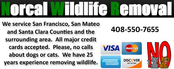 If you have any questions about a wildlife problem in San Jose, please give Norcal Wildlife Removal a call at 408-550-7655, and we will listen to your problem, give you a price quote, and