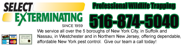 If you have any questions about a wildlife problem in Nassau County, or wildlife removal in Nassau County, please give Select Exterminating a call at 516-874-5040, and we will listen to your problem, give you a price quote, and