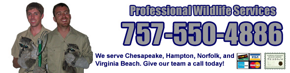 If you have any questions about a wildlife problem in Virginia Beach, or wildlife removal in Virginia Beach County, please give Professional Wildlife Services a call at 757-550-4886, and we will listen to your problem, give you a price quote, and