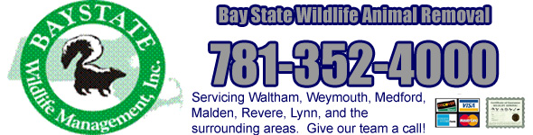 If you have any questions about a wildlife problem in Waltham, or wildlife removal in Middlesex County, please give Bay State Wildlife a call at 781-352-4000, and we will listen to your problem, give you a price quote, and