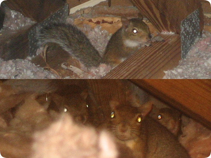 10.03.2006 - Here's a couple of squirrels that I've managed to photograph inside attics. I've already written many guides about how to remove squirrels from attics, so