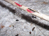 such as the lead piping around plumbing stacks, vents, wires, and of course wood. Although I've seen several cases in which they've chewed through and burst PVC plumbing piping, resulting in